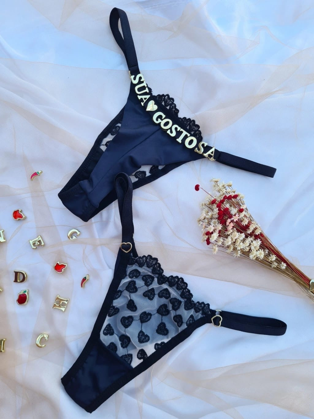 O tamanho da calcinha é único, mas todas as peças contam com regulagem lateral, garantindo melhor ajuste ao corpo.